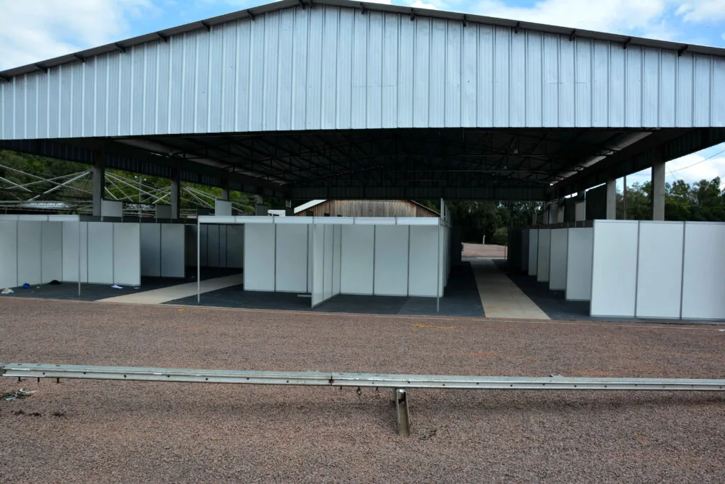 Divisórias estão sendo instaladas no pavilhão da Exposição Comercial, Industrial, Agropecuária e de Serviços (Fotos: Leandro Augusto Hamester)